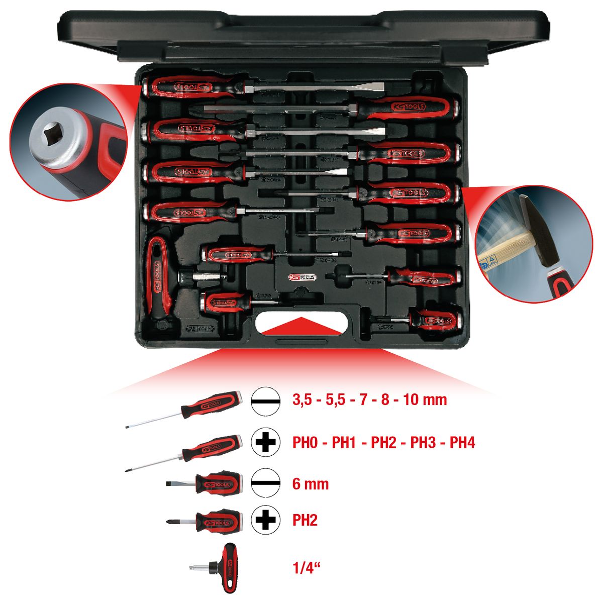 KS TOOLS Juego de destornilladores con cabeza de impacto ERGOTORQUEmax, 13 pzs ( 151.1150 )