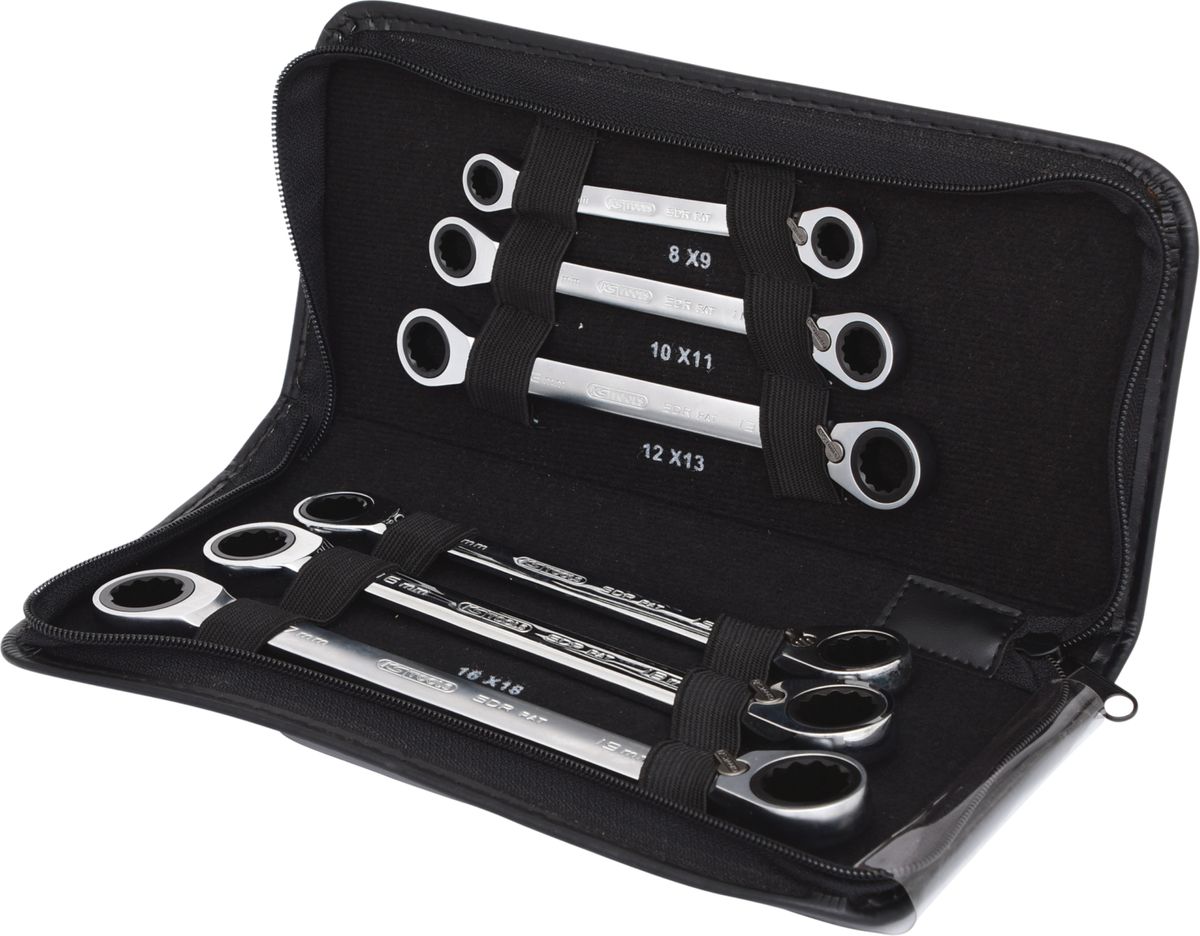 Juego de llaves de estrella dobles de carraca GEARplus, conmutables, 6 pzs - Juego de llaves de estrella dobles de carraca GEARplus®, conmutables
