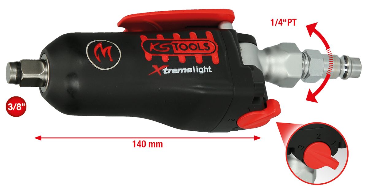 KS TOOLS Miniatornillador de impacto neumático de 3/8' MONSTER Xtremelight con selector basculante, 108 Nm ( 515.3830 )