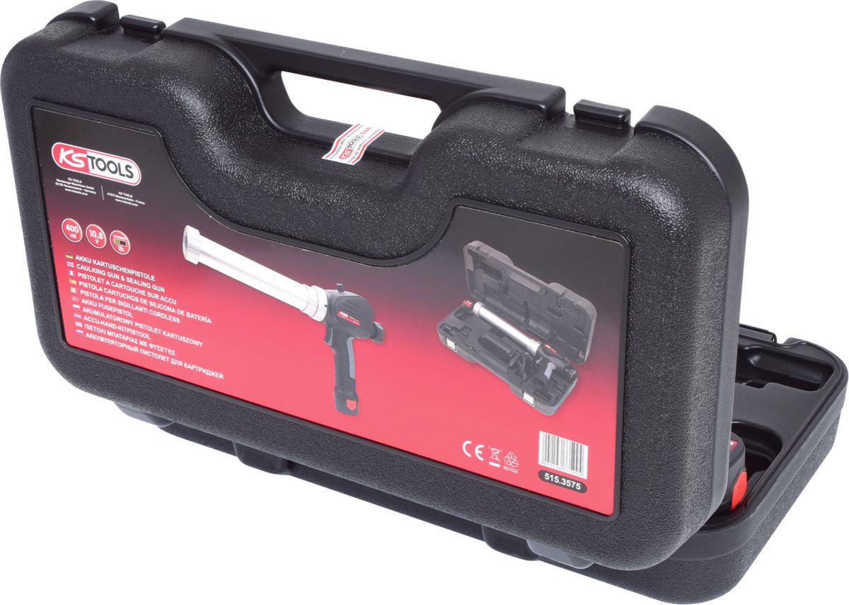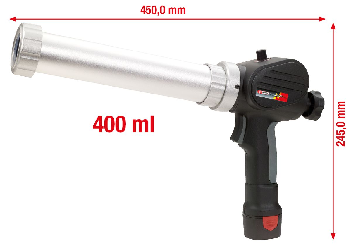 KS TOOLS Pistola de cartuchos de silicona de batería 400 ml con 1 bateria y 1 cargador ( 515.3575 )