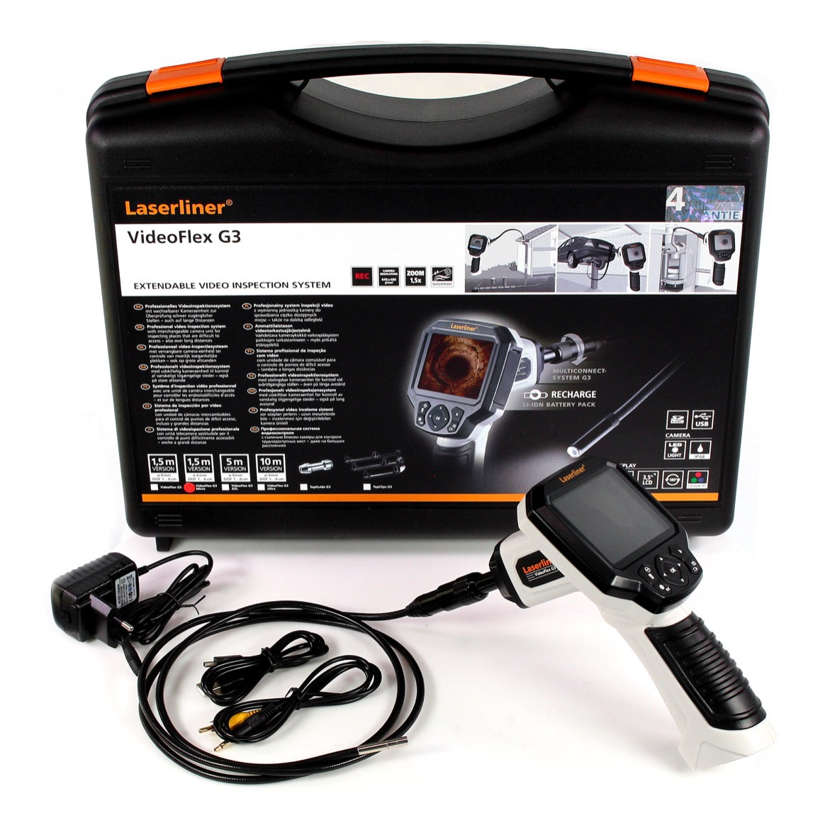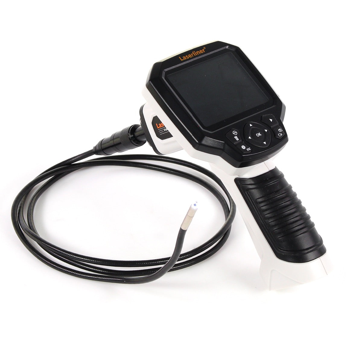 La cámara de inspección Laserliner VideoFlex G3 Micro es especialmente adecuada para localizar problemas en objetos, paredes, líneas, cables y otros lugares de difícil acceso. Gracias a los LED en el cabezal de la cámara y al diámetro de 6 mm, incluso los lugares oscuros e inaccesibles con malas condiciones de iluminación no son un problema. La función REC permite una evaluación posterior grabando y guardando directamente en el dispositivo. Amplias funciones en el monitor, como la rotación de imagen, que puede girar 180° la imagen en la pantalla LC integrada, o la función de espejo, que corrige imágenes especulares, completan la microcámara de inspección.