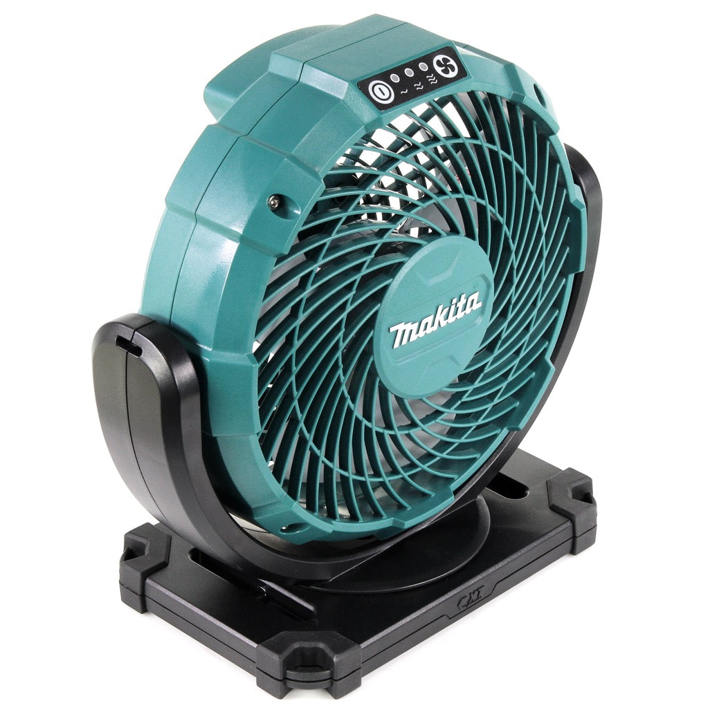 El ventilador Makita CF 100 tiene una velocidad máxima del aire de 180 m/s. Esto se puede regular en 3 niveles. El ventilador se puede inclinar 45° hacia abajo y 90° hacia arriba. Gira automáticamente de 90° a la derecha a 90° a la izquierda. También puede funcionar con pilas o con fuente de alimentación. El ventilador proporciona comodidad adicional en climas cálidos y acelera el secado de pintura o masilla.