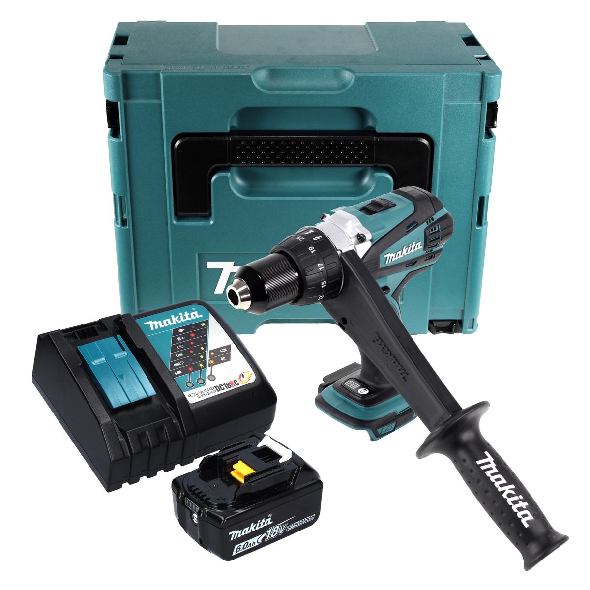 Makita DDF 458 RG1J Akumulatorowa wiertarko-wkrętarka 18 V 91 Nm + 1x akumulator 6,0 Ah + ładowarka + Makpac
