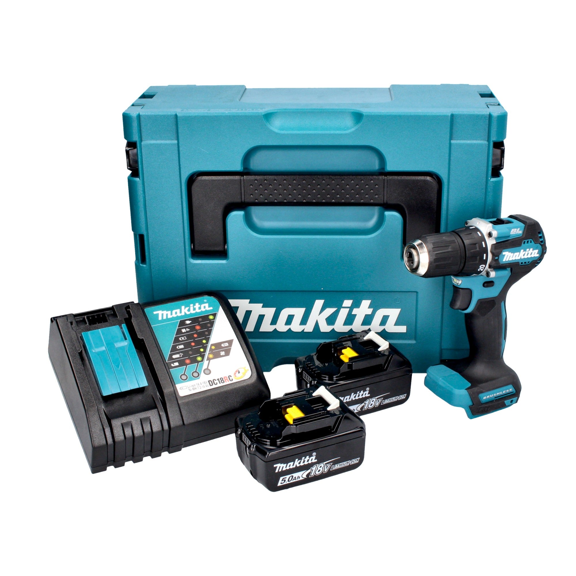 Makita DDF 487 RTJ akumulatorowa wiertarko-wkrętarka 18 V 40 Nm bezszczotkowa + 2x akumulator 5,0 Ah + ładowarka + Makpac