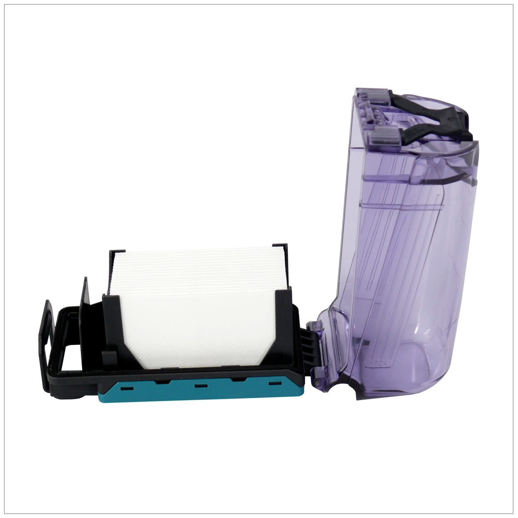La extracción de polvo Makita DX 02 funciona con la batería de la máquina. La turbina garantiza un trabajo sin polvo porque el filtro marca HEPA atrapa el polvo. El versátil tope de profundidad ajustable permite un trabajo suave y preciso.