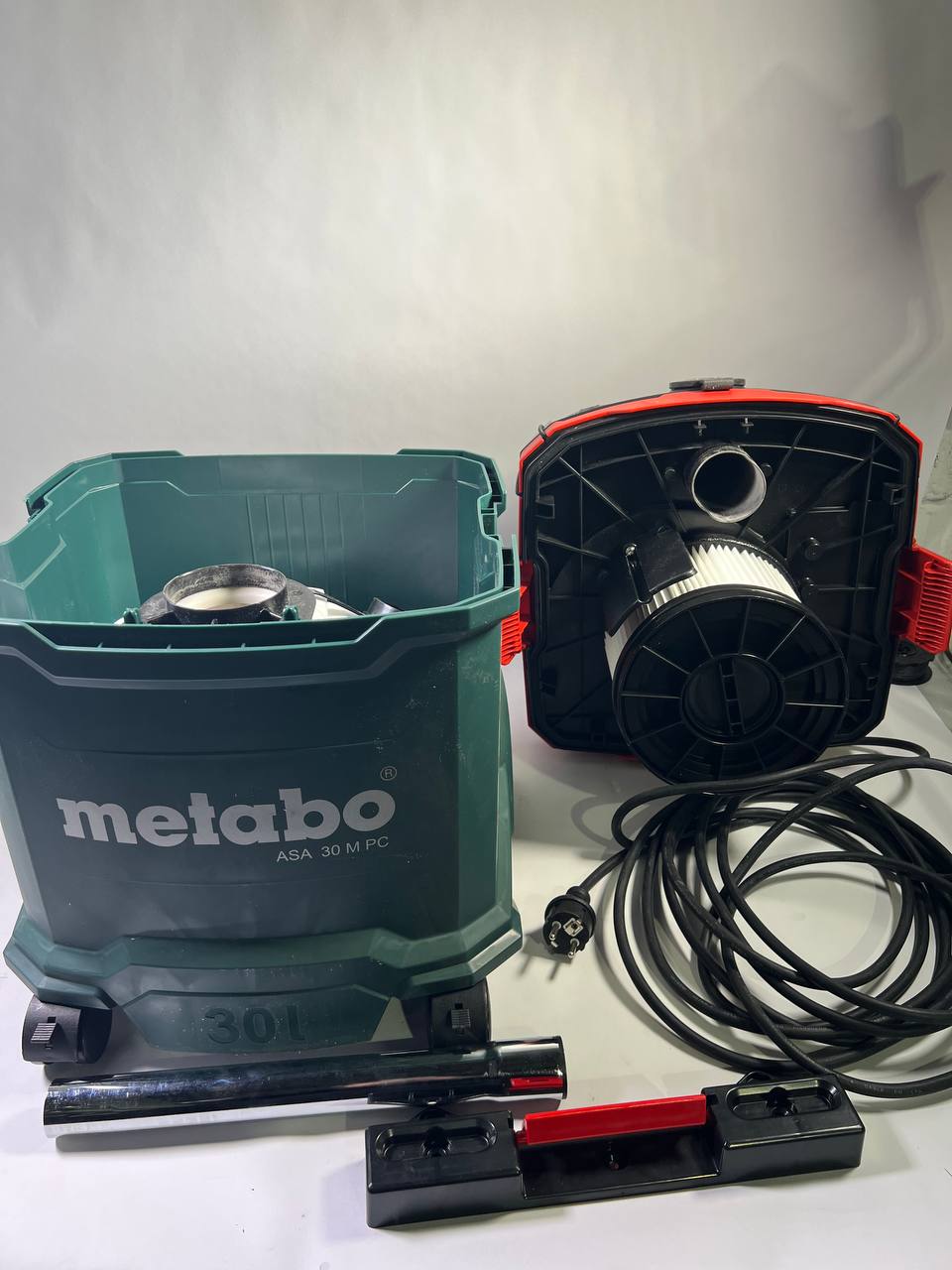 - Producent: Metabo Oznaczenie producenta: ASA 30 M PC Numer producenta: 602087000 Wydatek powietrza maks.: 4200 l/min Podciśnienie: 225 hPa (mbar) Powierzchnia filtra: 3500 cm² Pobór mocy maks.: 1200 W Pojemność zbiornika: 30 l Wąż ssący Ø: 32 mm Długość węża: 4 m Waga: 10,8 kg Długość kabla: 8 m Poziom ciśnienia akustycznego: 78 dB(A) Niepewność pomiaru K: 2,5 dB(A)