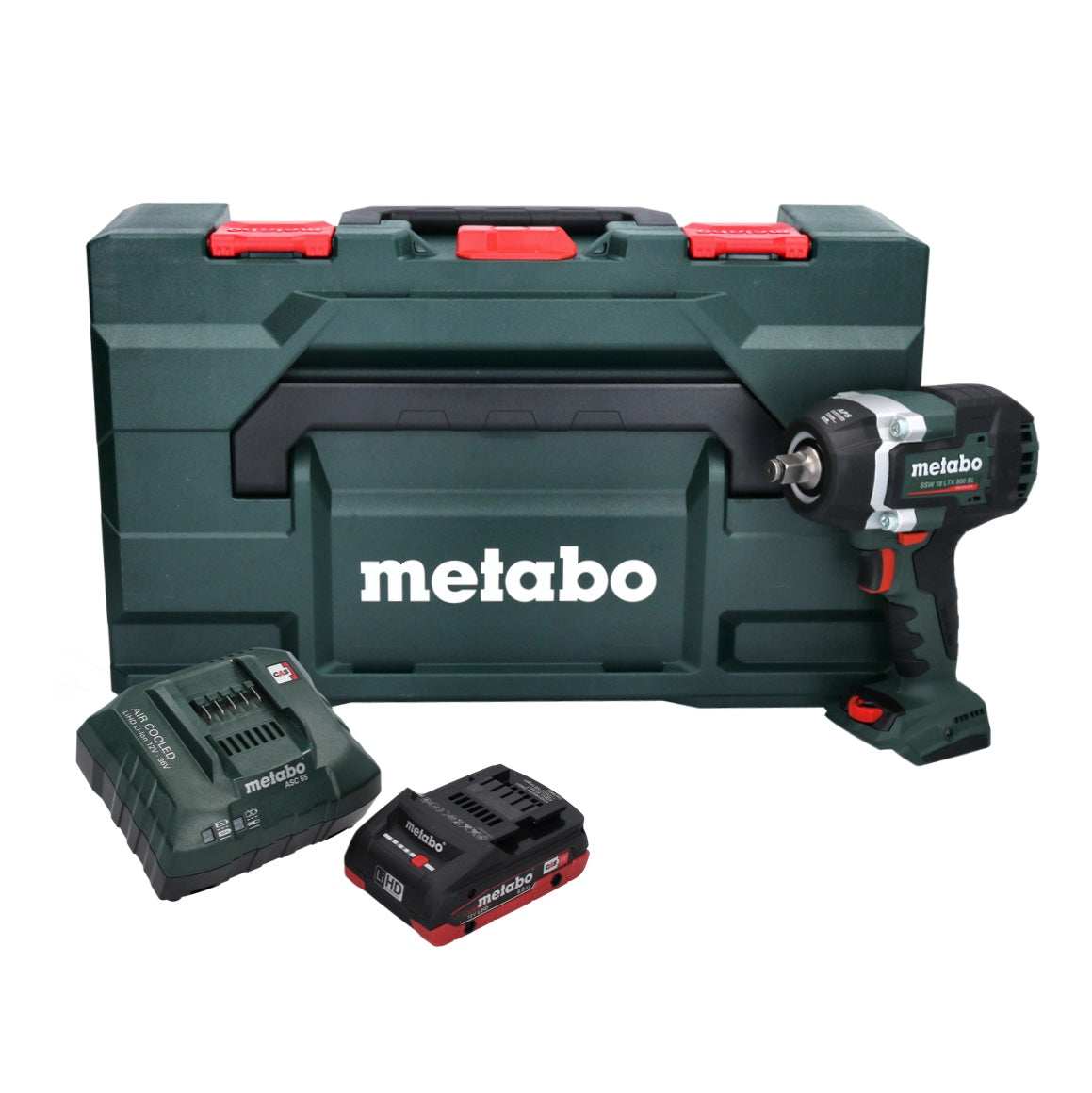 - 1x akumulatorowa wkrętarka udarowa Metabo SSW 18 LTX 800 BL - 1x akumulator litowo-jonowy Metabo LiHD 18V 4.0Ah ( 625367000 ) system CAS - 1x ładowarka Metabo ASC 55 ( 627044000 ) - 1x Metabo metaBOX 145