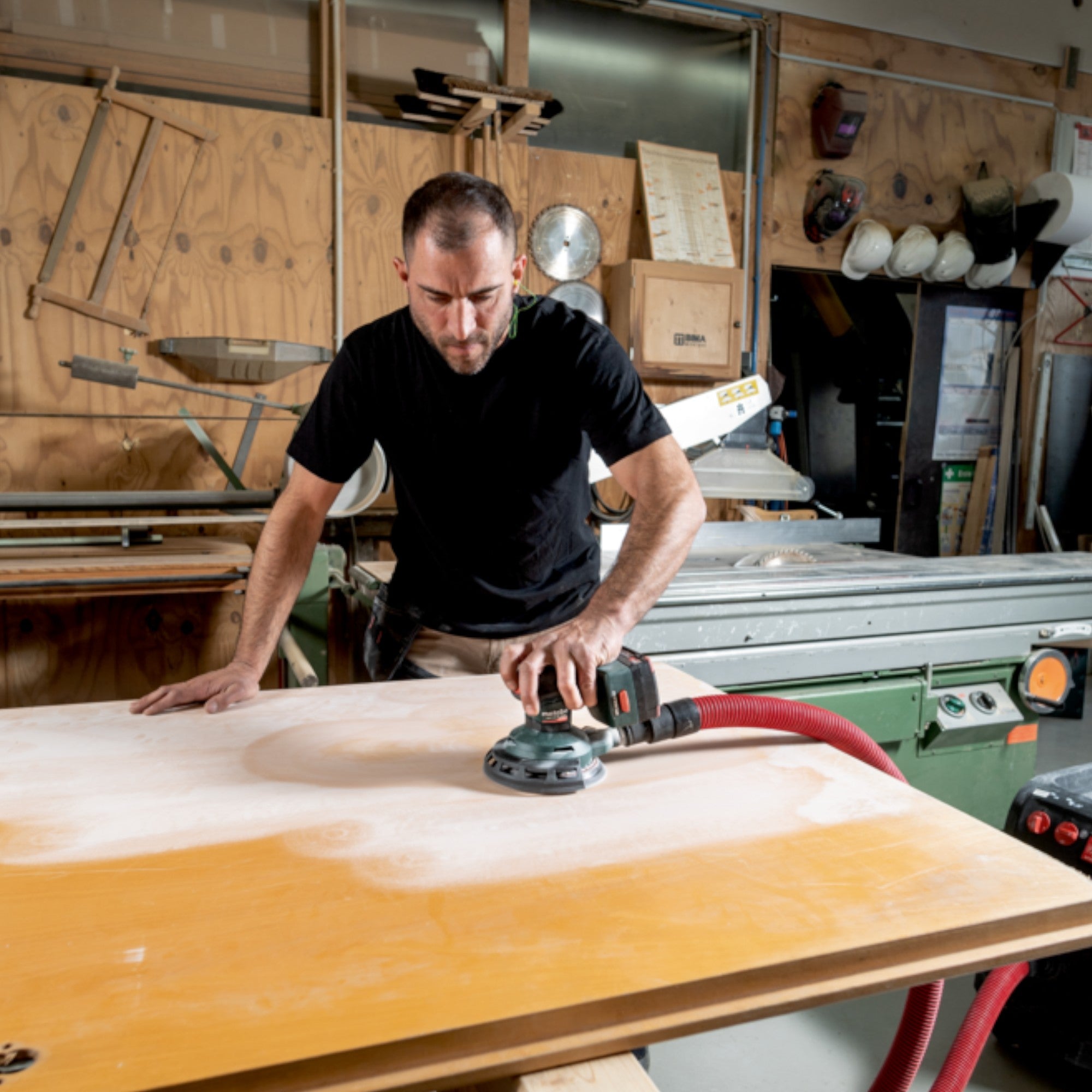 Akumulatorowa szlifierka mimośrodowa Metabo SXA 18 LTX 150 BL oferuje maksymalną wydajność i wygodę podczas profesjonalnego szlifowania dużych powierzchni. Tarcza szlifierska o średnicy 150 mm zapewnia wysoką wydajność usuwania materiału i umożliwia szybką, wydajną pracę. Dzięki niewielkiej wysokości, szlifierka może być prowadzona szczególnie blisko powierzchni, umożliwiając osiągnięcie precyzyjnych rezultatów. Aby zapewnić komfortową pracę, szlifierka jest wyposażona w antypoślizgową, miękką powierzchnię uchwytu, która zapewnia pewny chwyt i optymalną kontrolę. Płynna praca redukuje wibracje i umożliwia niemęczącą pracę - idealną do dłuższych zastosowań. Łagodny rozruch gwarantuje również, że po odłożeniu szlifierki nie wystąpią żadne uszkodzenia powierzchni. Bezszczotkowy silnik gwarantuje wyjątkową wydajność, nawet podczas pracy ciągłej. Dzięki bezstopniowej regulacji prędkości obrotowej, prędkość może być optymalnie dostosowana do danego materiału, co zwiększa zarówno jakość, jak i żywotność materiału ściernego. Wieloperforowana tarcza szlifierska zapewnia również skuteczne odsysanie pyłu, co zmniejsza zapylenie i wydłuża żywotność materiałów ściernych. Dzięki łatwemu do opróżnienia tekstylnemu workowi na pył szlifierka może również pracować bez odsysania. Alternatywnie, urządzenie można podłączyć do uniwersalnego odkurzacza za pomocą tulei przyłączeniowej 630798000. Silnik i hamulec tarczy umożliwiają szybkie odstawienie maszyny, a zdejmowana osłona chroni sąsiednie powierzchnie i wydłuża żywotność tarczy szlifierskiej. Punkt mocowania pasów zabezpieczających narzędzia jest szczególnie praktyczny podczas pracy na dużych wysokościach i zapewnia dodatkowe bezpieczeństwo.
