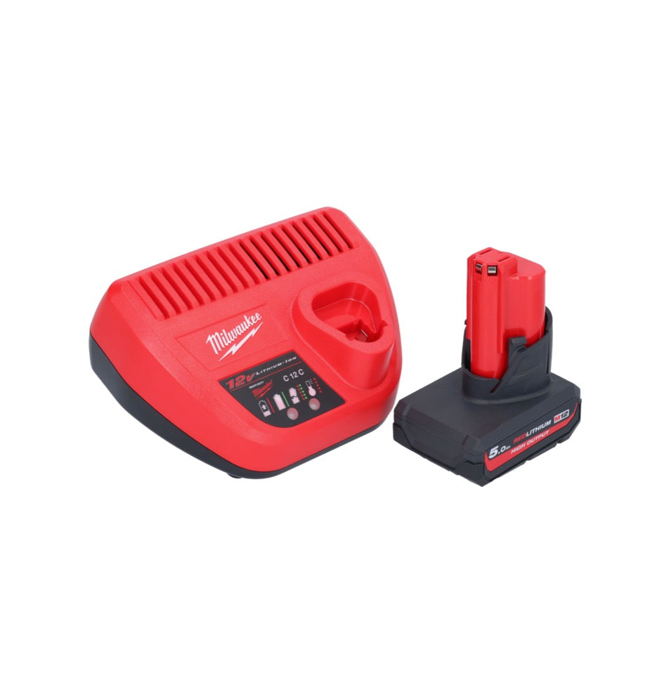 - 1x akumulator litowo-jonowy Milwaukee M12 HB5 High Output 12 V 5,0 Ah / 5000 mAh