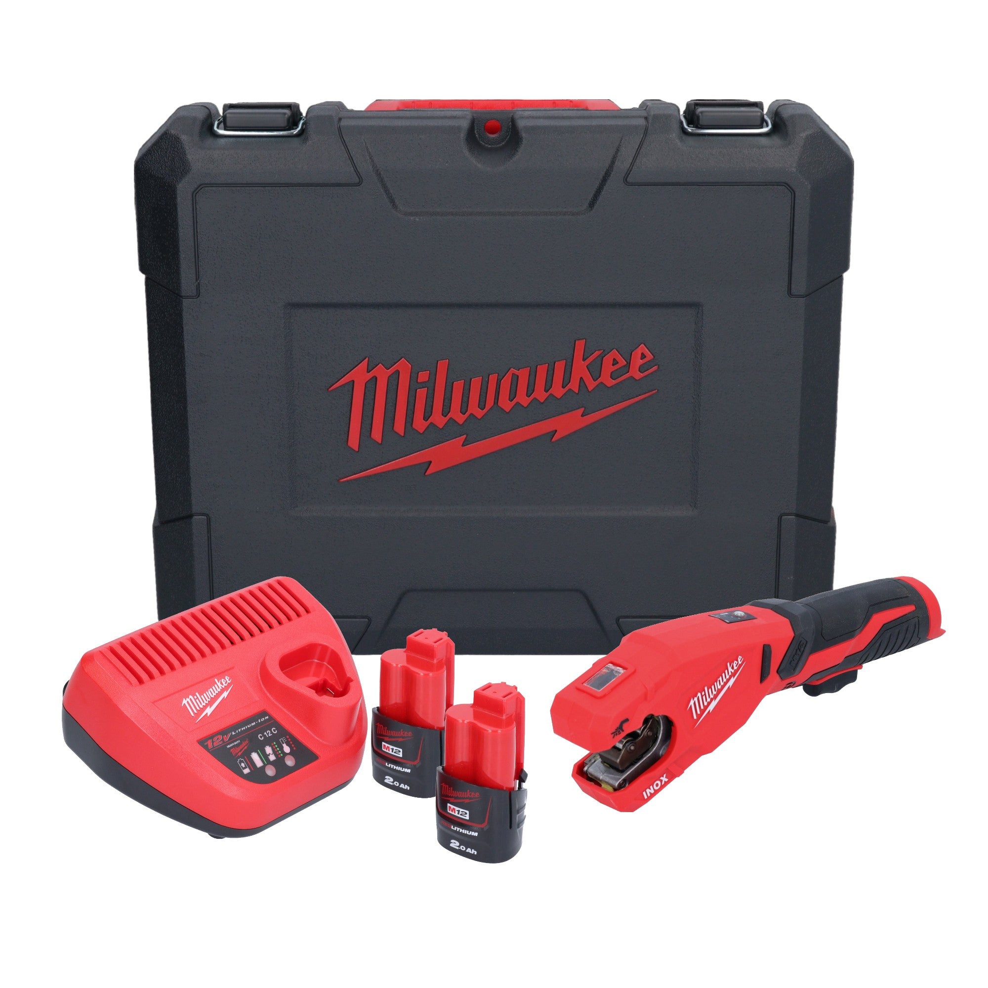 Milwaukee M12 PCSS-202C cortatubos de acero inoxidable a batería 12 V (4933479242) 12 - 28 mm + 2x baterías 2,0 Ah + cargador + estuche