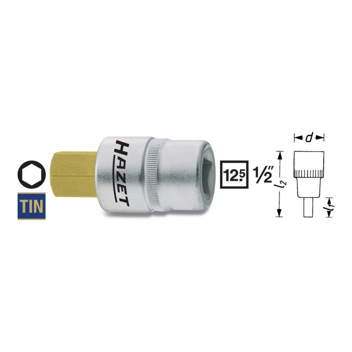 Napęd kwadratowy 12,5 mm (1/2 ") - do śrub z gniazdem sześciokątnym - specjalny stalowy grot - wkładka z powłoką TIN - radełkowany uchwyt - DIN 7422