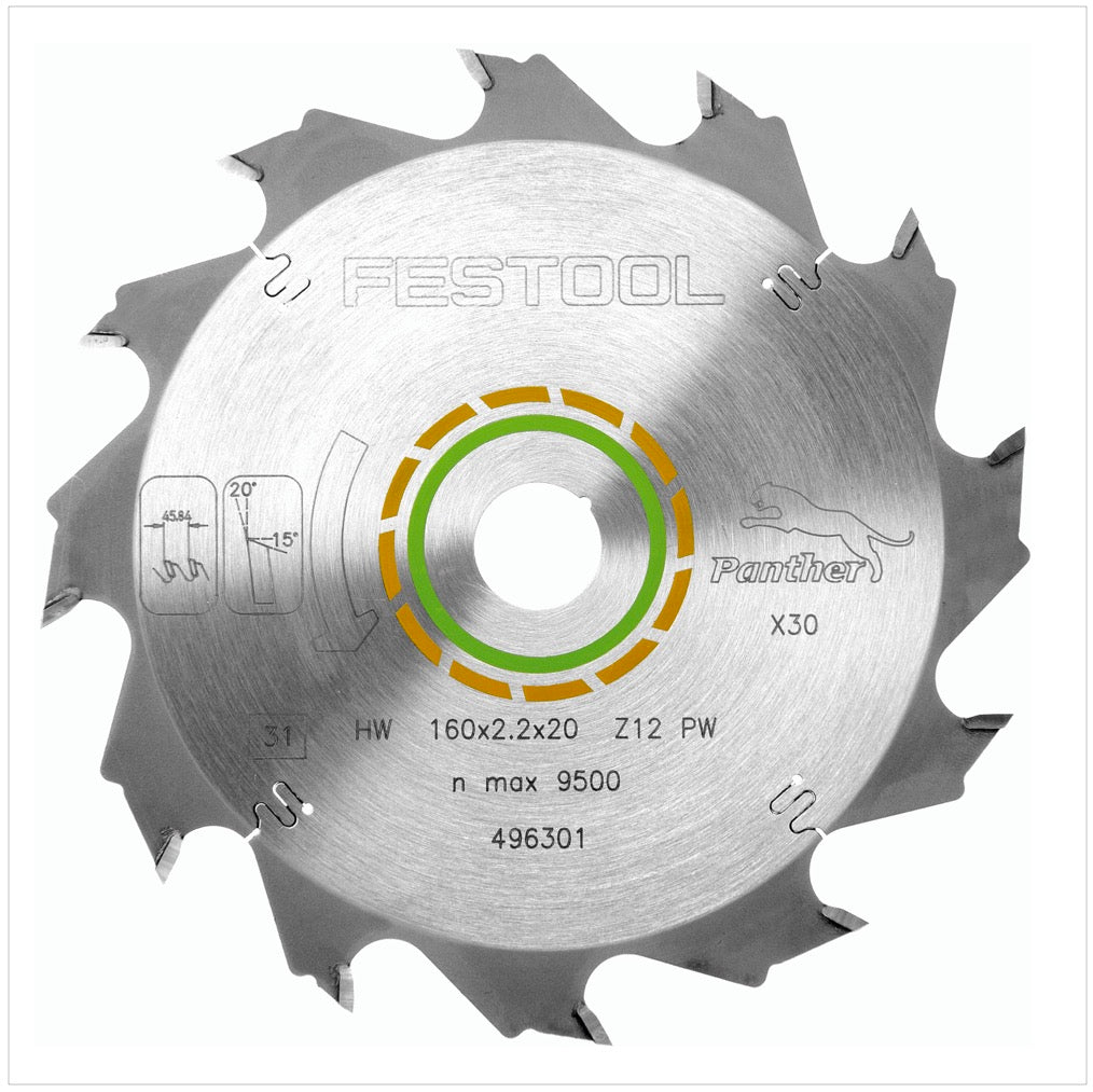 - 1x Piła tarczowa Festool Panther HW 160 x 20 x 2,2 PW12 12 zębów ( 496301 )