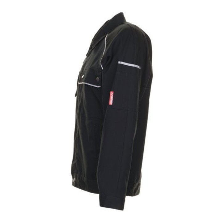 65% poliester / 35% bawełna - splot płócienny - ok. 320 g/m² - bardzo przewiewny, wyjątkowo wytrzymały, odporny na kurczenie materiał z tyłu zgodnie z normą DIN EN ISO 6330 - 2 wpuszczane kieszenie z materiału Cordura® - odblaskowe lamówki na wstawkach na rękawach i klapach kieszeni - 2 kieszenie na piersi, lewa z klapką i zatrzaskami, prawa z dodatkową kieszenią na telefon komórkowy - kieszeń na lewym rękawie z podwójnymi przegródkami na długopisy - elastyczny pas - ukryte zapięcie na zatrzaski z przodu - mankiety rękawów regulowane za pomocą zatrzasków Dostępne w rozmiarach na zamówienie: 42-64, 90-110 i 24-27