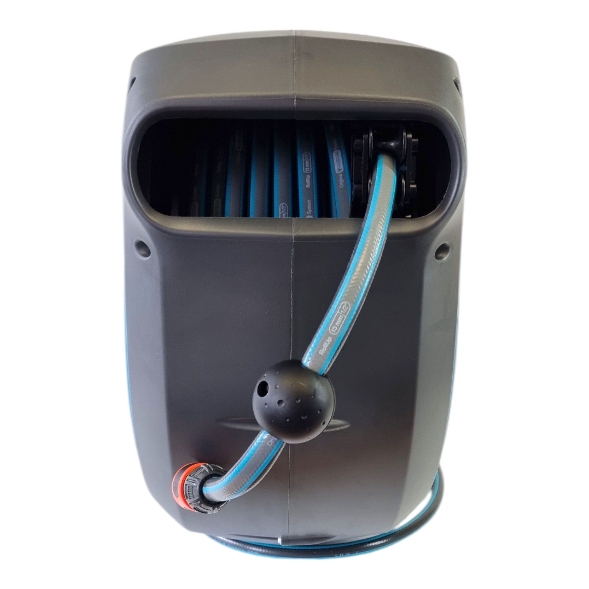 GARDENA puszka naścienna RollUp XL sprawia, że podlewanie dużych ogrodów staje się dziecinnie proste: kompaktowa puszka może być na stałe zamontowana na ścianie domu i jest wyposażona w wąż o długości 35 m, który dzięki możliwości obrotu o 180° zapewnia maksymalną swobodę ruchów podczas podlewania - bez irytującego skręcania, załamywania i zawiązywania węży. Po pociągnięciu węża do żądanej długości, krótkie ograniczniki blokujące automatycznie zatrzaskują się i niezawodnie zabezpieczają go na miejscu. Wystarczy lekkie pociągnięcie, aby zintegrowana stalowa sprężyna zwinęła wąż równomiernie, bezpiecznie i bez niekontrolowanego zwijania dzięki technologii RollControl. Precyzyjna prowadnica węża zapewnia, że wąż jest starannie zwinięty bez zagięć. Wypróbowany i przetestowany system Original GARDENA umożliwia elastyczne podłączanie wszystkich elementów nawadniających GARDENA, a nawet przechowywanie ich pod uchwytem ściennym w celu zaoszczędzenia miejsca. Konstrukcja chroniąca przed promieniowaniem UV i mrozem sprawia, że RollUp XL jest odporny na warunki atmosferyczne przez cały rok, a ochrona przed kradzieżą zapewnia dodatkowe bezpieczeństwo. W zestawie znajdują się wszystkie niezbędne elementy instalacyjne i przyłączeniowe, w tym wąż przyłączeniowy, uchwyt ścienny, części systemowe i opryskiwacz z dwiema opcjami natrysku - dla wszechstronnego, dobrze przemyślanego nawadniania.
