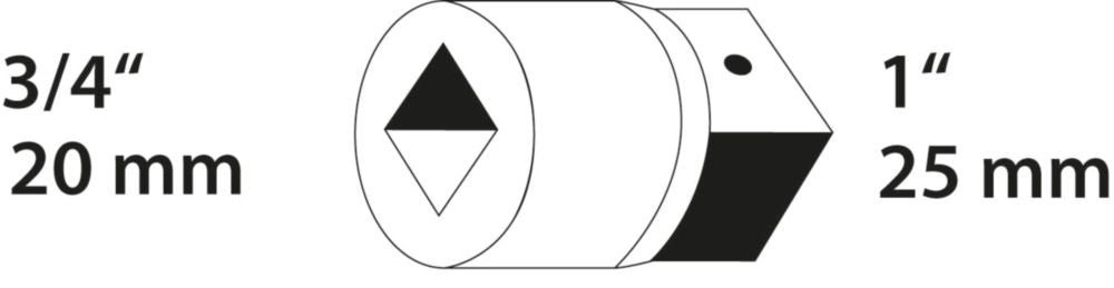 Napęd kwadratowy 20 mm (3/4″) - do nasadek obsługiwanych ręcznie - z blokadą sworznia - stal wanadowa - chromowane - radełkowane - napęd kwadratowy wewnętrzny 20 mm (3/4″) do zewnętrznego 25 mm (1″) - DIN 3123 / ISO 3316