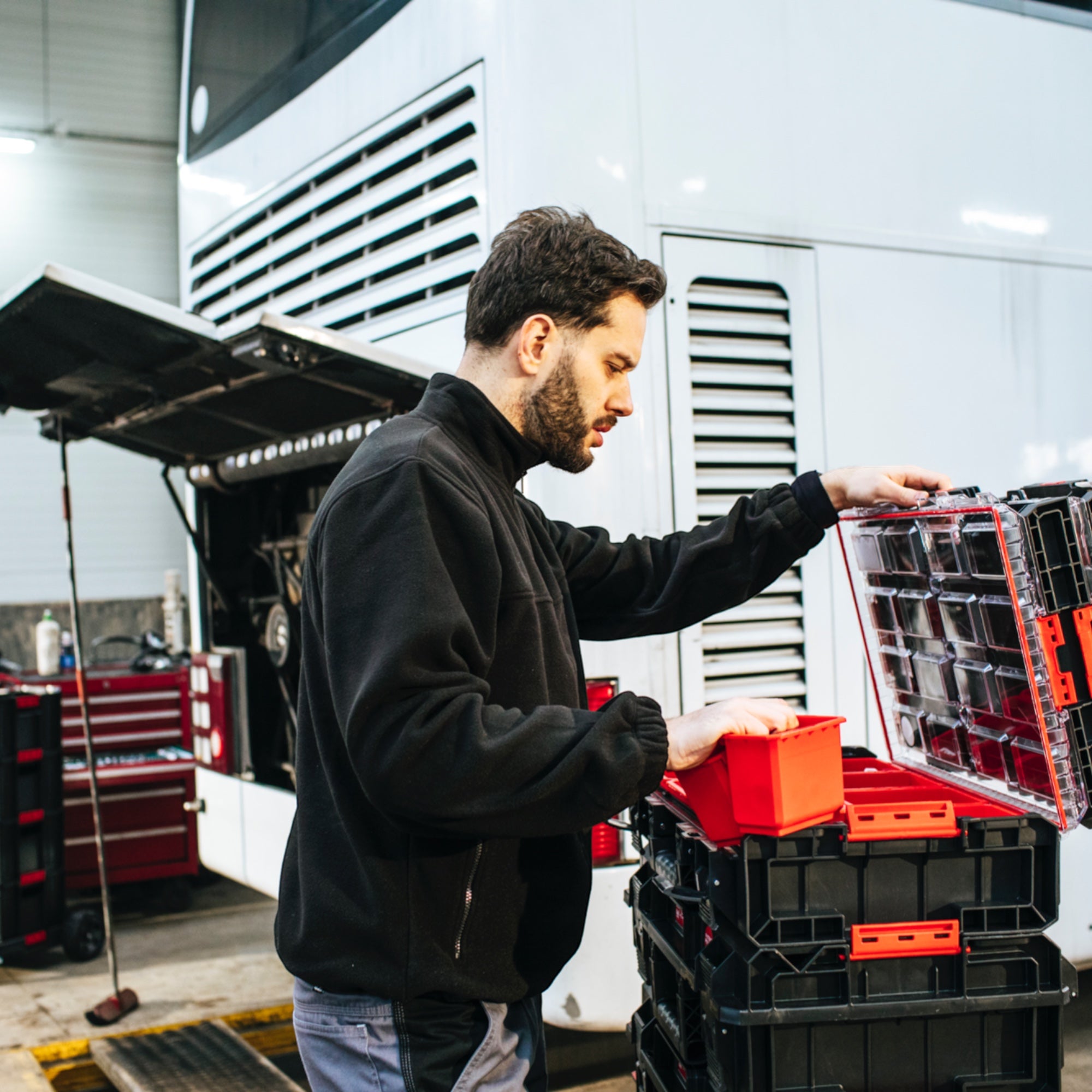 Qbrick System ONE Organizer XL to największy model w rodzinie modułowych organizerów, które można łączyć ze sobą, ale także ze wszystkimi komodami z linii ONE. Organizer XL wyposażony jest w dwa nowe, długie wiaderka, z których każde mierzy ponad 30 cm. Organizer zawiera również 2 średnie i 4 małe wiaderka. Wersja 2.0 linii produktów ONE to nowa generacja skrzynek narzędziowych i organizerów o wzmocnionej konstrukcji. Dzięki dodatkowemu przystosowaniu skrzyń do wkładek gwintowanych M8, system można dostosować do potrzeb użytkownika.