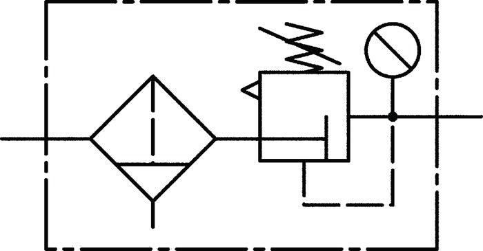 Standard - Niezależny od ciśnienia zwrotnego, sterowany pilotem membranowy regulator ciśnienia z wtórnym odpowietrzaniem w połączeniu z separatorem odśrodkowym, gwint wewnętrzny, ze zbiornikiem z poliwęglanu.