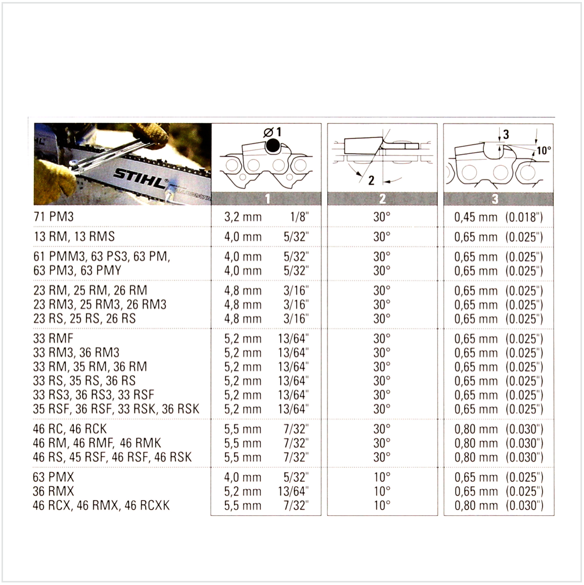 El carril guía estrecho para motosierras Stihl ligeras. Gracias al bajo peso y al mayor rendimiento de corte, se requiere poca fuerza para trabajar. Este carril guía de alto rendimiento está fabricado en acero elástico y el carril de la cadena está templado por inducción. Adecuada para las cadenas de sierra de eslabones finos 3/8" Picco Micro o 1/4" Picco Micro 3. Esta cadena de sierra para la clase básica es robusta, de bajas vibraciones y resistente. La cadena tiene un corte estrecho, por lo que tiene un contragolpe muy reducido y es extremadamente resistente. El sistema de lubricación Oilomatic de Stihl garantiza aún menos fricción y desgaste.