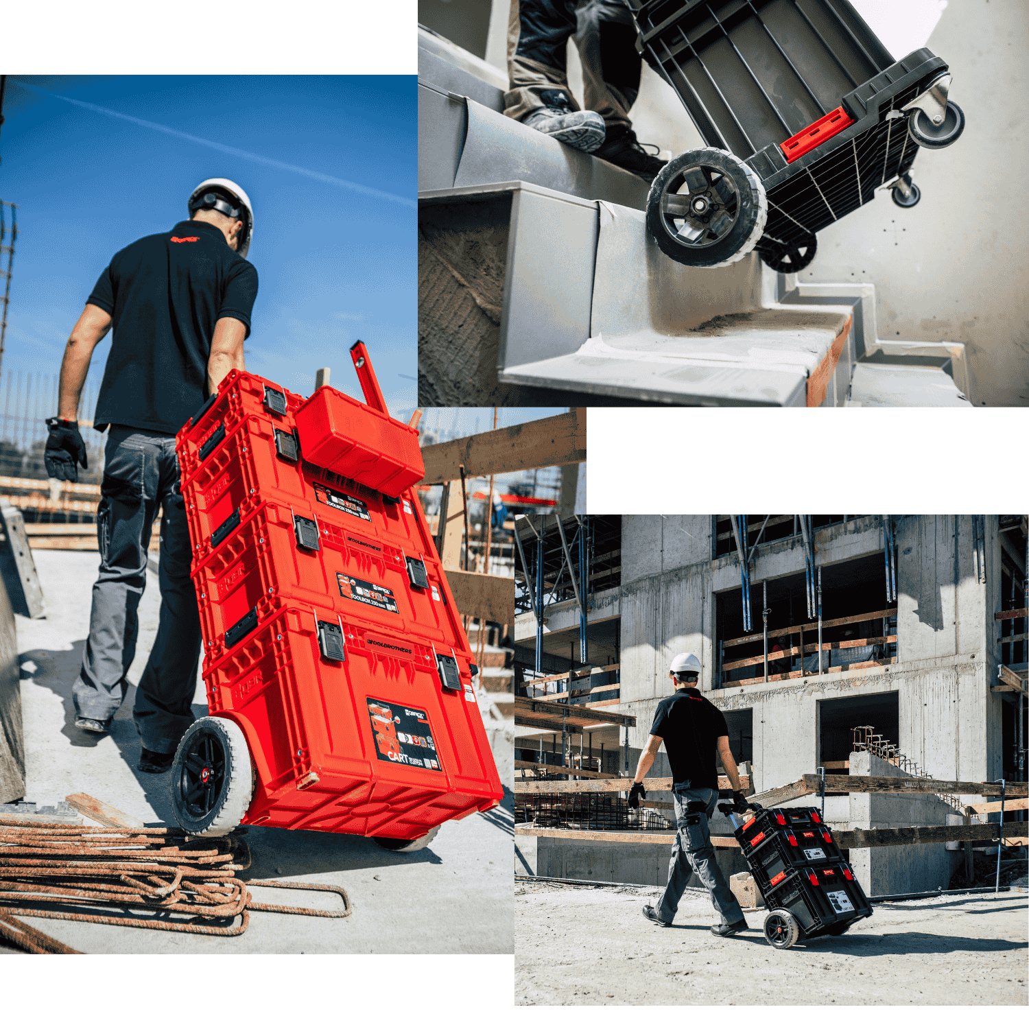 Cechy szczególne: mobilna walizka szufladowa, 2 szuflady, kompatybilna z L-Line, przegródki i pudełka do organizacji szuflad, szuflady z metalowymi prowadnicami, podstawa do mobilnego warsztatu, wbudowane wkładki gwintowane M8, ULTRA wytrzymałe tworzywo sztuczne