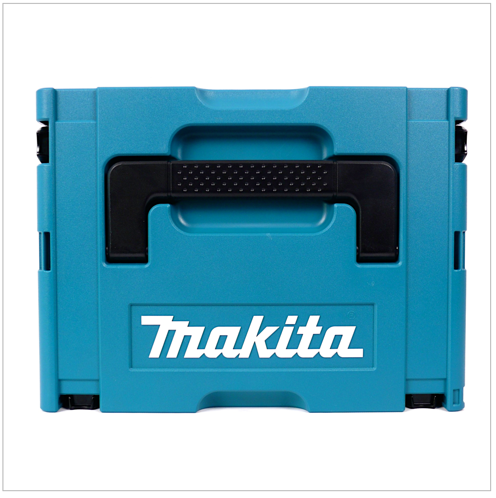 System Makita MAKPAC oferuje najlepsze warunki do bezpiecznego przechowywania narzędzi i akcesoriów w zasięgu ręki. Walizki można również wygodnie układać w stosy, zatrzaskiwać i łatwo transportować. Konstrukcja Makita MAKPAC składa się z dwuściennych profili narożnych oraz wzmocnionych powierzchni pokrywy, boków i podstawy. Ponadto zaokrąglone krawędzie obudowy i uchwytu zwiększają komfort użytkowania i przenoszenia. Dzięki wkładce systemowej do BGA / DGA 452 urządzenie z akumulatorami i ładowarką można idealnie schować. Dane: