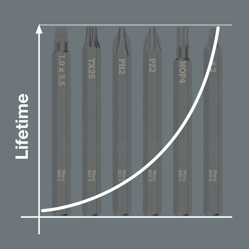 bardzo wytrzymały - do użytku z wkrętarką udarową Wera 921 (nr art. 4000 827 256 i 4000 827 283) z napędem sześciokątnym 6,3 mm (1/4")