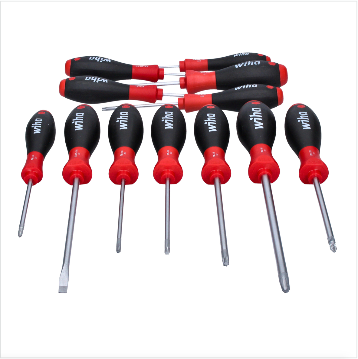 El juego de destornilladores Wiha aumenta la eficiencia y protege la salud del usuario. Los destornilladores SoftFinish de Wiha, especialmente ergonómicos, garantizan una transferencia óptima de la fuerza manual. Las zonas duras y blandas del mango están situadas de manera que permitan un acceso perfecto al girar de forma rápida y potente. El símbolo del tornillo impreso en el extremo del mango facilita la búsqueda del destornillador adecuado. La protección antivuelco en el mango hace que el molesto giro del destornillador sea cosa del pasado. Los mangos largos y delgados son perfectos para atornillar tornillos pequeños de forma segura y rápida. Los tamaños de mango de gran volumen, que se pueden utilizar para aplicar pares de torsión más elevados, son adecuados para tornillos grandes. Los diferentes tamaños de mango se adaptan a la mano de los destornilladores, que siempre son del mismo tamaño. Gracias a su agarre óptimo, los destornilladores son especialmente adecuados para aplicaciones en ambientes secos.