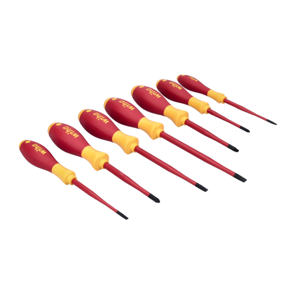 El juego de destornilladores Wiha SoftFinish electric slimFix cubre las aplicaciones de destornillador más comunes. La serie Soft Finish se caracteriza por el diseño patentado del mango y por el trabajo resultante que es suave para los músculos. Los médicos y terapeutas recomiendan este diseño especial para prevenir enfermedades. Además, el mango también puede aumentar la eficiencia del trabajo y permitir largas jornadas laborales. La calidad del acabado promete una larga vida útil y mucha diversión con los destornilladores. Wiha es una empresa de larga data con conceptos sofisticados y herramientas de alta calidad. Con sello VDE: Probado individualmente a 10.000 voltios AC y aprobado para 1000 voltios AC.