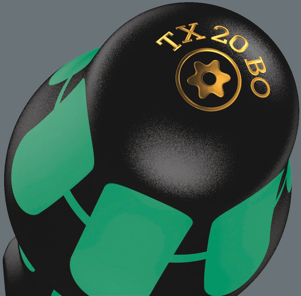 z wielokomponentową rękojeścią z zabezpieczeniem przed staczaniem - ostrze ze stali stopowej z końcówką BlackPoint - z otworem w profilu Torx® (również z kołkiem blokującym) - system prowadzenia rozmiaru - system wyszukiwania narzędzi Take it easy - do wkrętów z wewnętrznym profilem TORX® (również z kołkiem blokującym)