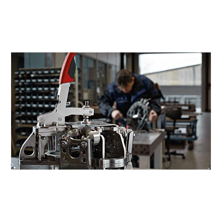 automatyczna, bezstopniowa regulacja wysokości mocowania do 35 mm z mniej więcej taką samą siłą mocowania - regulowana siła mocowania poprzez regulację śruby ustalającej w przegubie - zdejmowana osłona ochronna na płycie dociskowej - układ otworów w płycie podstawy odpowiedni dla mm i cali - 2-komponentowy uchwyt z tworzywa sztucznego