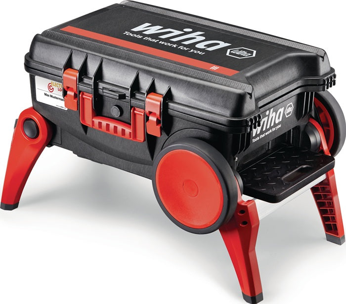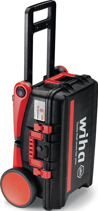 Wszechstronny, praktyczny asortyment w solidnej walizce ochronnej - Zintegrowane amortyzatory gazowe utrzymują zamontowaną pokrywę w żądanej pozycji - Pyłoszczelna i wodoodporna walizka z zaworem wyrównującym ciśnienie - Możliwość sztaplowania, zwijania - Ze zintegrowanym wózkiem - Rozkładane nóżki do podniesionej pozycji demontażu i stabilny, antypoślizgowy stopień do pracy na wysokości - Duże kółka do wygodnego toczenia po schodach i nierównym terenie - Nacięcie w kształcie litery V w pokrywie jako pomoc przy piłowaniu Zawartość: Ablängen/Abschneiden 1 Kabelschneider, Länge 210 mm* 1 Seitenschneider, Länge 160 mm* Abmanteln/Abisolieren/Crimpen 1 Abisolierwerkzeug für Rundkabel von 0,5 - 6 mm² Ø Zuführen/Halten 1 Flachrundzange, Länge 200 mm* 1 Kombizange, Länge 180 mm* Verschrauben/Verklemmen je 1 Schraubendreher mit SoftFinish®-Griff (slimFix) für Schlitzschrauben Gr. 3,5 x 100 / 4,0 x 100 / 5 x 125 mm* 1 wkrętak z uchwytem SoftFinish® (slimFix) do wkrętów z łbem krzyżakowym (PH) rozmiar 1 x 80 / 2 x 100 mm* 1 wkrętak z uchwytem SoftFinish® (slimFix) do wkrętów PlusMinus z łbem krzyżakowym (SL/PZD) rozmiar 2 x 100 mm* 1 zestaw kluczy trzpieniowych w uchwycie ProStar, z sześciokątną główką kulistą, rozmiary 1,5 / 2 / 2,5 / 3 / 4 / 5 / 6 / 8 / 10 mm 1 asortyment bitów 31-częściowy, PH, PZD, Torx z magnetycznym uchwytem uniwersalnym 1 zestaw narzędzi elektrycznych slimVario® 19-częściowy* 1 wkrętak z magazynkiem bitów PocketMax® z 4 bitami slimBits* Inne narzędzia 1 tester napięcia i ciągłości 12 - 1.1000 V AC, CAT IV 1 miara składana dla elektryków, długość 2 m 1 poziomica dla elektryków, długość 40 cm 1 młotek dla elektryków (waga główki 300 g) *izolacja VDE