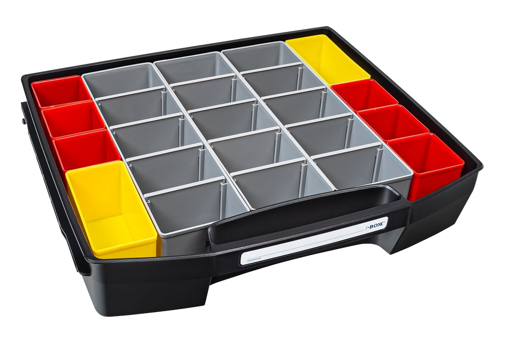 Zestaw Insetbox I3 iB 72 pozwala na perfekcyjne uporządkowanie drobnych części i utrzymanie ich w zasięgu wzroku. Niezależnie od tego, czy używasz go w warsztacie, czy w połączeniu z systemem L-BOXX lub ProClick, pudełka mogą być bezpiecznie używane w dowolnym miejscu. Są one dopasowane do kształtu i zapewniają, że małe części są zawsze dobrze zorganizowane. Zestaw zawiera różne rozmiary pudełek, dzięki czemu masz odpowiednią opcję przechowywania dla każdego rodzaju małych części.