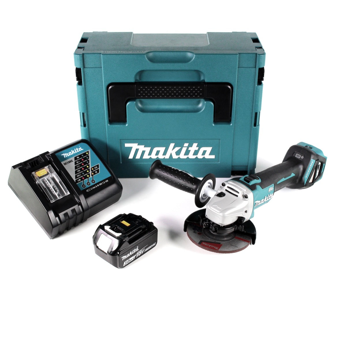 Amoladora angular sin cable Makita DGA 511 RF1J 18V 125mm sin escobillas + 1x batería recargable 3.0Ah + cargador + Makpac