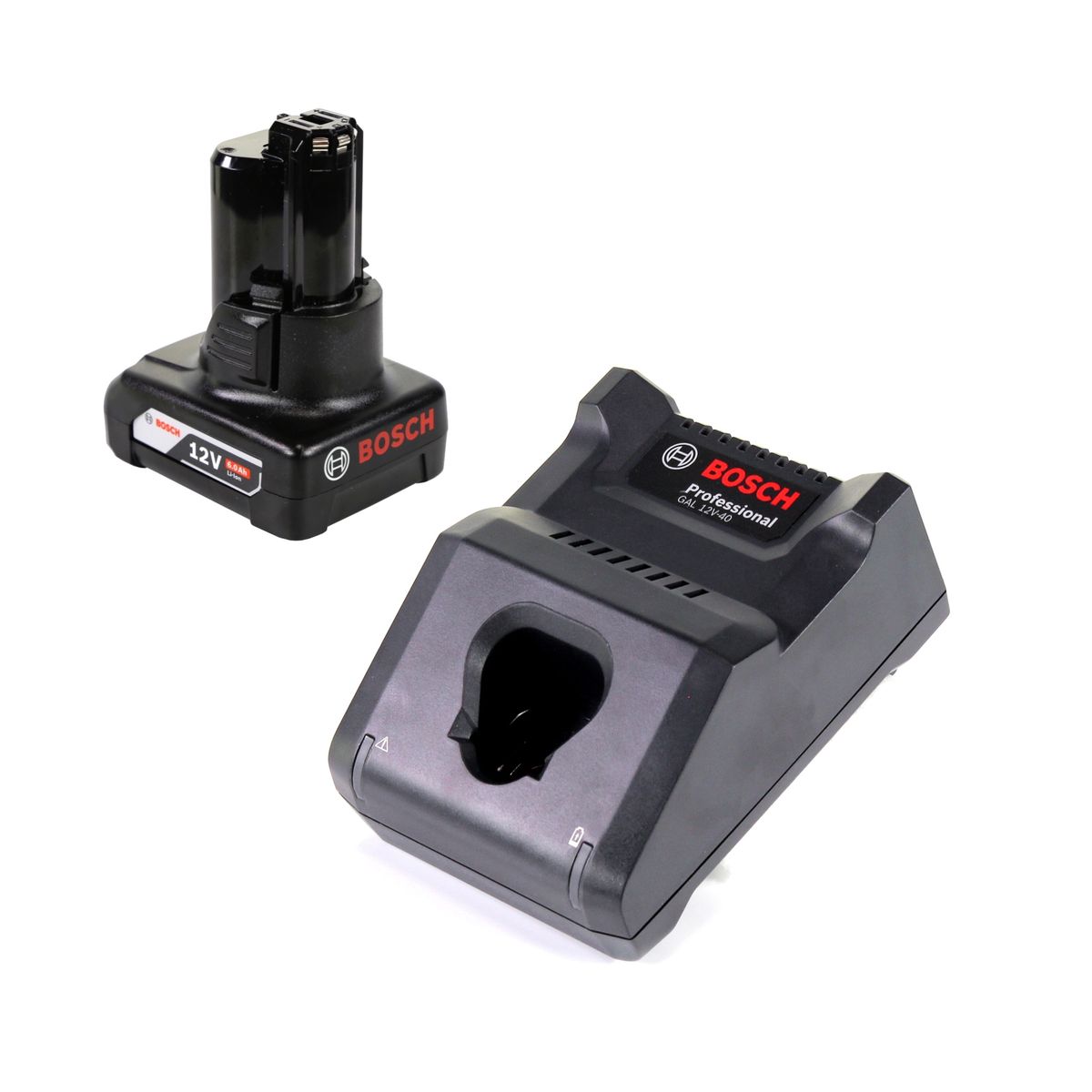 Cargador rápido profesional Bosch GAL 12V-40 para baterías de 12V (1600A019R3) + batería de 6,0 Ah (1600A00X7H)