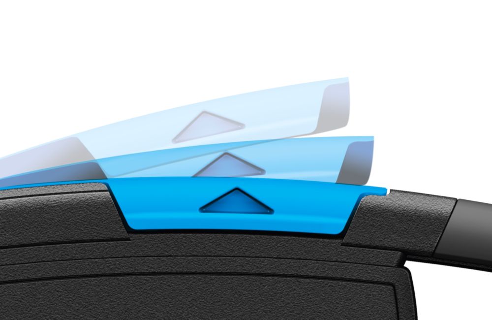 Especialista en film y fleje - de plástico reforzado con fibra de vidrio - cuchilla oculta para máxima seguridad en el trabajo y máxima protección del producto - nuevo diseño y ergonomía notablemente mejorada, incluida empuñadura blanda - nueva cuchilla de calidad utilizable en 4 sentidos - incisor de cinta reversible con dos profundidades de incisión (5 mm/3,5 mm) - cambio de cuchilla simplificado y especialmente seguro sin herramientas - para diestros y zurdos
