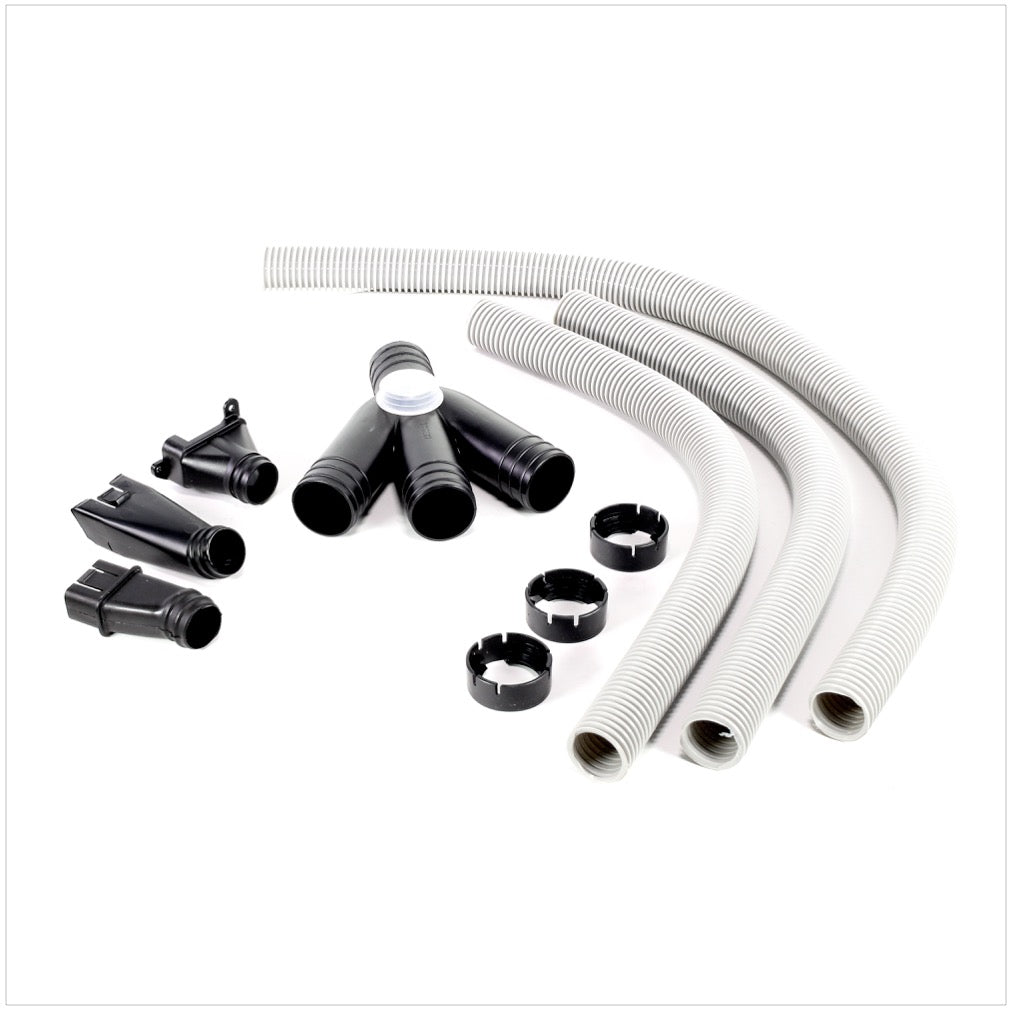 El equipo de aspiración DeWALT DE 7778 es ideal para eliminar el polvo y las virutas de las sierras transversales, sierras de inglete y sierras de tablero con la aspiradora satélite.