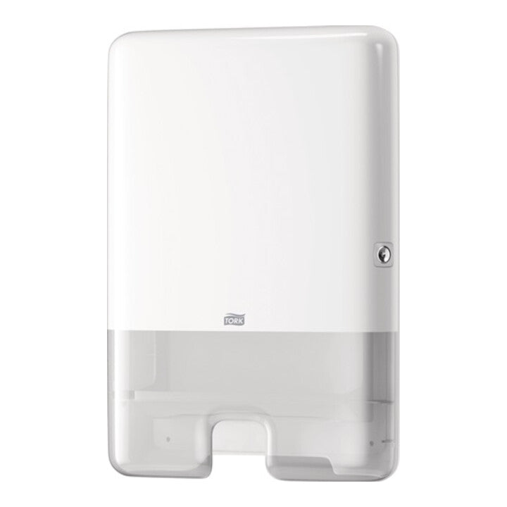 para toallas multipliegue - carcasa de plástico resistente a los golpes - con cerradura - extracción higiénica rápida de una sola hoja (multipliegue) - consumo económico - ventana de visualización semitransparente - blanco