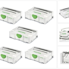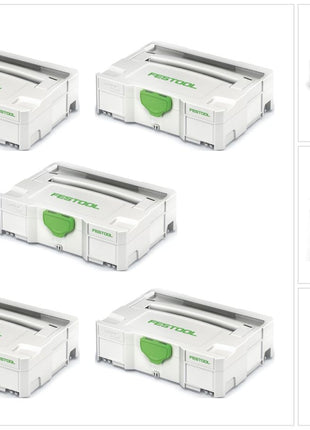 Festool 5 x Systainer T-LOC SYS 1 TL maletín de herramientas gris claro conectable ( 497563 )