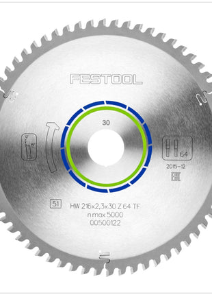 Hoja de sierra circular especial Festool HW 216 x 30 x 2,3 mm TF64 216 mm 64 dientes (500122)