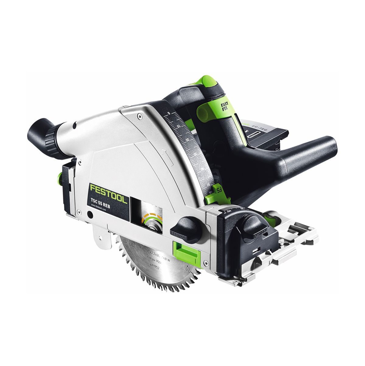 La sierra de inmersión con batería Festool TSC 55 REB-Li es ideal para cortes de inmersión precisos en espesores de material de hasta 55 mm y es perfecta para cortar puertas interiores, serrar huecos en puertas y encimeras de cocina, cortar material de paneles y crear juntas de dilatación en Suelos de parquet y huecos de sombra. La sierra de inmersión TSC 55 REB-Li convence por su potente motor EC-TEC sin escobillas de 36 V (2x 18 V) con tecnología de iones de litio. El potente motor alcanza velocidades muy altas (hasta 5200 rpm) y, por tanto, una calidad de corte perfecta con un rápido avance del trabajo. La bolsa para el polvo incluida permite un trabajo sin suciedad ni emisiones y, con la nueva generación FastFix, la hoja de sierra se puede cambiar rápida y fácilmente.