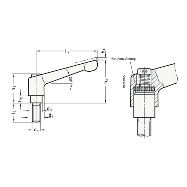 - Palanca de sujeción ajustable GN 300 d1 M 12 mm