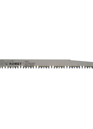 La hoja de sierra Komet es adecuada para el procesamiento de madera verde, madera aserrada, madera y plásticos. El acabado extremadamente robusto y el acero con un porcentaje de cromo y vanadio garantizan una gran resistencia. Gracias a su forma de dientes entrelazados especialmente desarrollada, con la hoja de sierra se pueden realizar trabajos exigentes. La forma Vario Tooth reduce las vibraciones y permite cortes suaves a través del material. Gracias a estas propiedades se evitan daños adicionales a la planta. El gran paso de dientes garantiza una eliminación de material rápida y eficaz. El grosor de 1,27 mm y la longitud de 240 mm cubren muchas aplicaciones. La excelente calidad de las hojas de sierra Komet fabricadas en Alemania está estrictamente controlada.