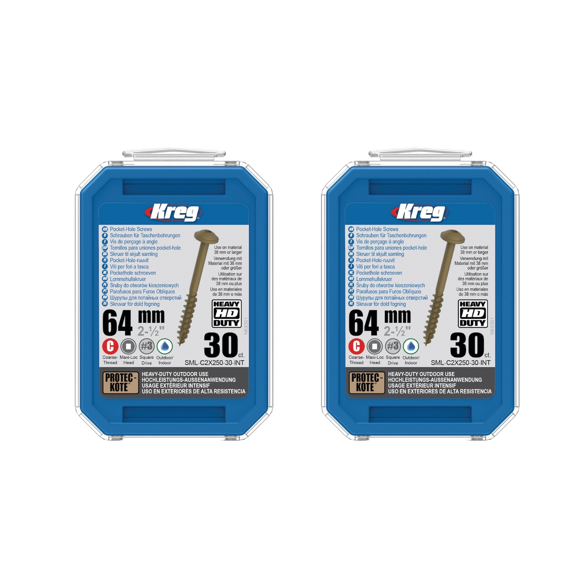 - 2x Kreg HD Protec-Kote Maxi-Loc tornillos perforadores 64 mm 60 piezas