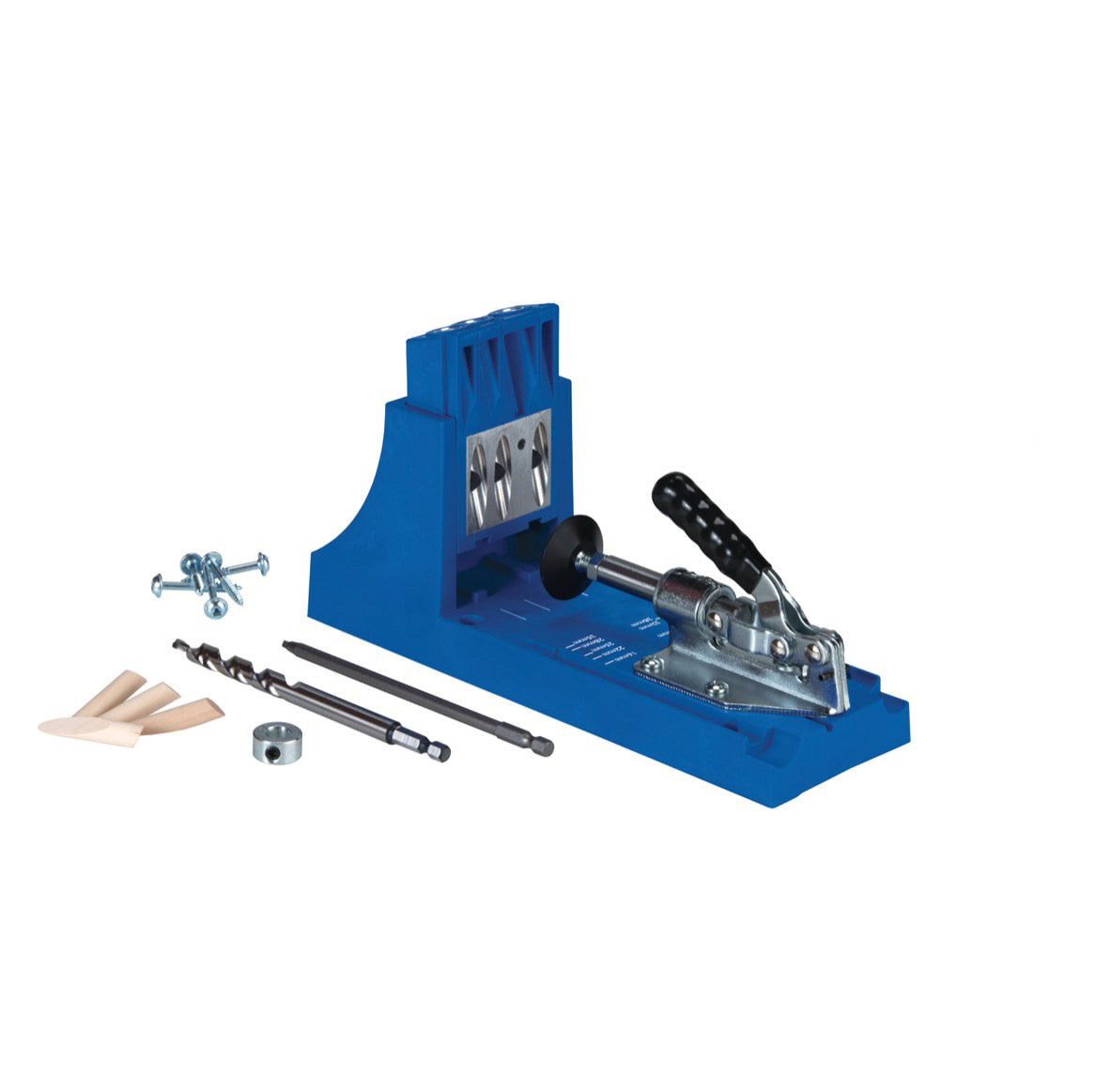 La plantilla de perforación Kreg K4 es la elección perfecta para los entusiastas del bricolaje y facilita la iniciación en las soluciones de unión de madera con perforaciones. Las 3 guías de perforación le proporcionan perforaciones perfectamente posicionadas para una variedad de materiales, anchuras y grosores que van desde 1/2' a 11/2' (12-38mm) en incrementos de 1/8'(3mm). Cada guía de broca Kreg consta de El núcleo encierra la broca y soporta la pieza de trabajo a lo largo del agujero, lo que resulta en una alta precisión de perforación, menor desgarro de material y un agujero de bolsillo limpio, listo para su posterior procesamiento, con un rebaje de tamaño generoso. El Kreg K4 cuenta con una abrazadera montada en la parte trasera que ofrece una estabilidad increíble y mantiene la pieza de trabajo firmemente en su lugar. La carcasa azul de cada plantilla para taladrar Kreg K4 está fabricada con un resistente nylon reforzado con fibra de vidrio. Este compuesto único proporciona la elasticidad y flexibilidad necesarias sin sacrificar la resistencia ni la durabilidad. A diferencia de las plantillas de taladrado convencionales con un ángulo de ataque más estrecho, esta plantilla de taladrado ofrece un ángulo de taladrado óptimo, elegido para aumentar la eficiencia de accionamiento con agujeros de bolsillo mínimamente grandes. Esto proporciona agujeros de bolsillo compactos en tamaños más pequeños que 11/2 '(38mm), y tiene un puerto de salida de virutas de madera para cada una de las guías de perforación, diseñado para mantener la plántula en exceso, lo que minimiza el arrastre durante la perforación y el tiempo de perforación se incrementa.
