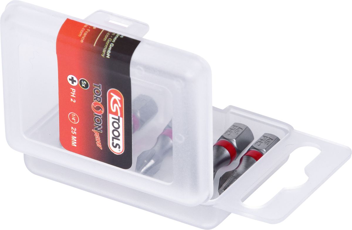 KS TOOLS 1/4' Punta TORSIONpower para tornillos de estrella PH, 25mm, PH2, paquete de 5 ( 918.3111 )