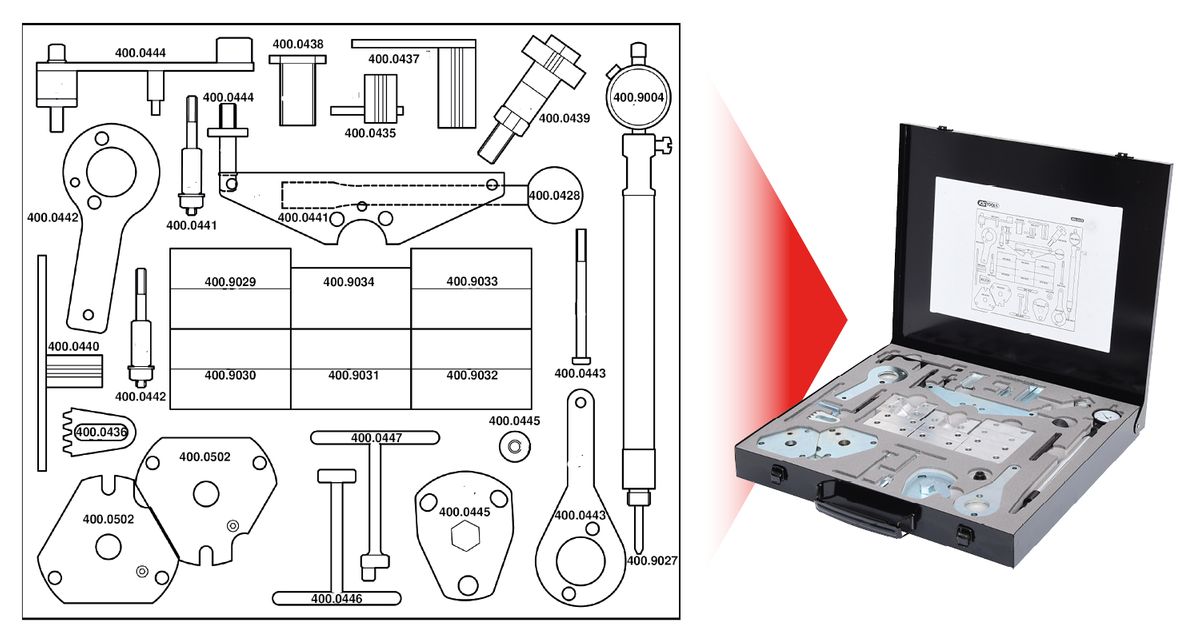 Descripción del producto:Juego de herramientas de reglaje de motores para Alfa Romeo / Fiat / Lancia, 36 pzs - Juego de herramientas de reglaje de motores para Alfa Romeo / Fiat / Lancia