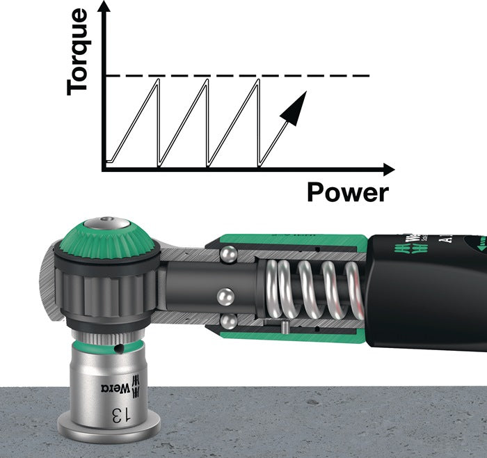 para apriete en sentido horario y antihorario - desbloqueo automático - precisión de desbloqueo + 10 % del valor de escala ajustado - se suministra con certificado de fábrica +/-10 % de tolerancia Características especiales: - mecanismo de desbloqueo deslizante (por lo que nunca se puede sobrepasar el valor de par de apriete ajustado) - función de bloqueo del par de apriete (la función de par de apriete se puede desconectar - por lo que también se puede utilizar como carraca estándar con pares de apriete elevados y para aplicaciones con ángulos de par de apriete definidos) - para el apriete controlado a derechas e izquierdas (apriete y afloje con y sin par de apriete) - fácil ajuste y aseguramiento del valor de par de apriete deseado (activación audible y táctil cuando se alcanzan los valores de la escala) - sólo 30 ° de ángulo de desbloqueo tras alcanzar el valor de par de apriete objetivo