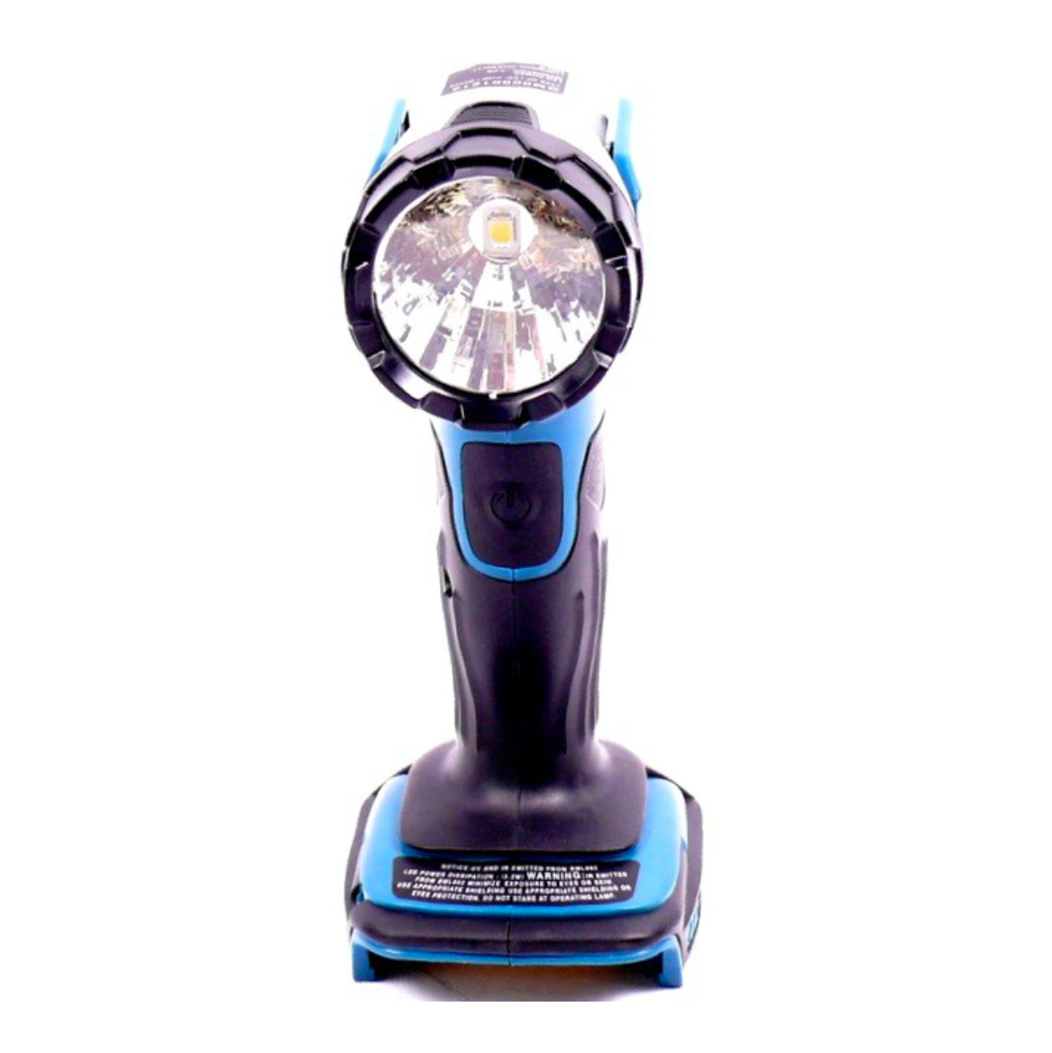 La lámpara ultra brillante está diseñada para iluminar áreas de trabajo particularmente difíciles de alcanzar. Cuenta con un cabezal de aluminio que se puede ajustar en 12 posiciones diferentes y es compatible con baterías de 14,4V y 18V.