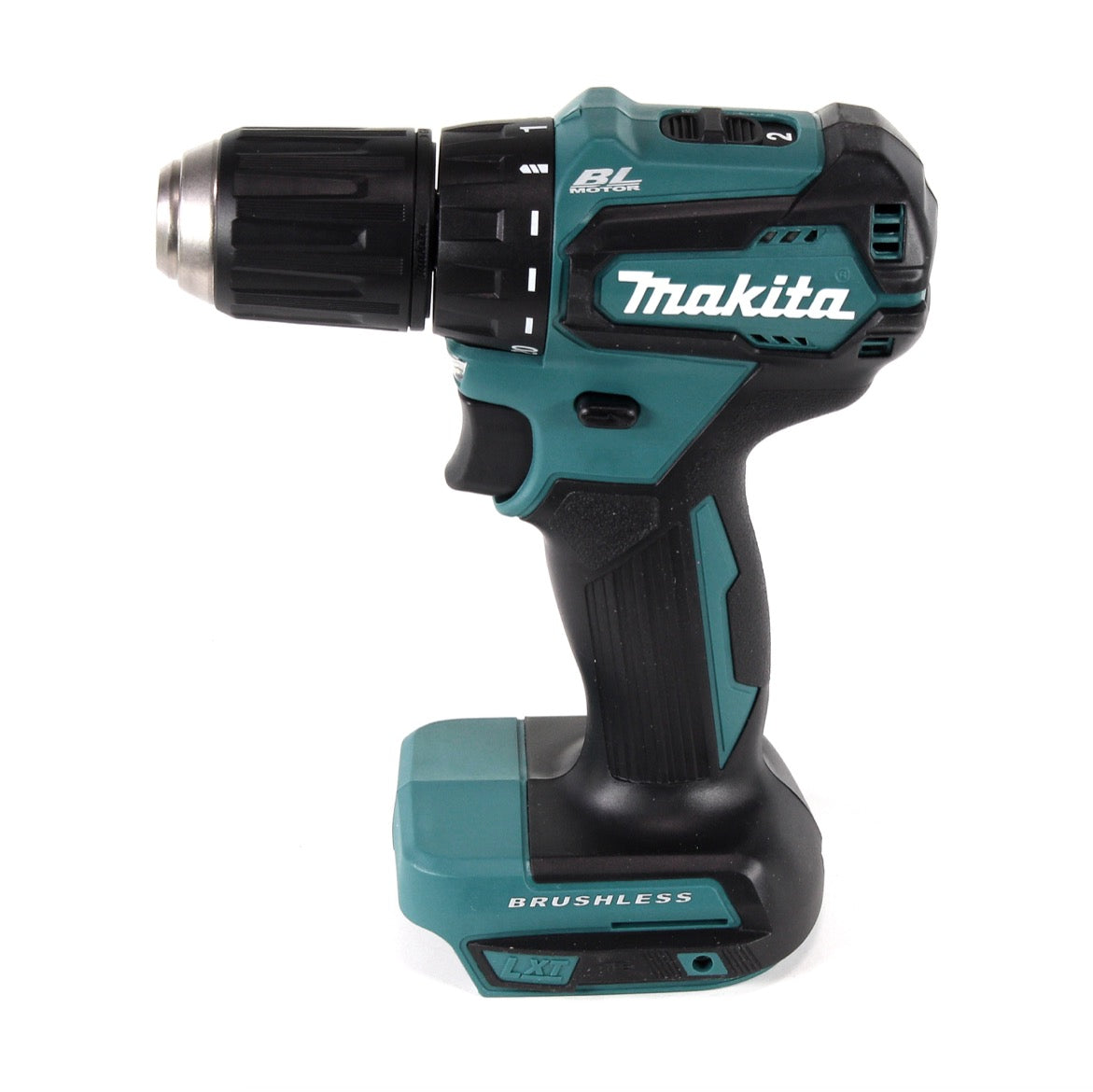 El taladro atornillador DDF 483 de 18 voltios de Makita convence por su motor sin escobillas y su robusta carcasa de aluminio fundido a presión. La tecnología de motor sin escobillas garantiza una mayor duración (con una carga de batería), una vida útil más larga del dispositivo y un diseño más compacto (sólo 162 mm de longitud de carcasa). Además, el dispositivo tiene un engranaje planetario de 2 velocidades totalmente metálico y el par se puede regular en 20 + 1 paso de taladrado. Además, está equipado con un freno de motor para conexiones atornilladas en serie precisas y una luz LED doble brillante para una visibilidad óptima.