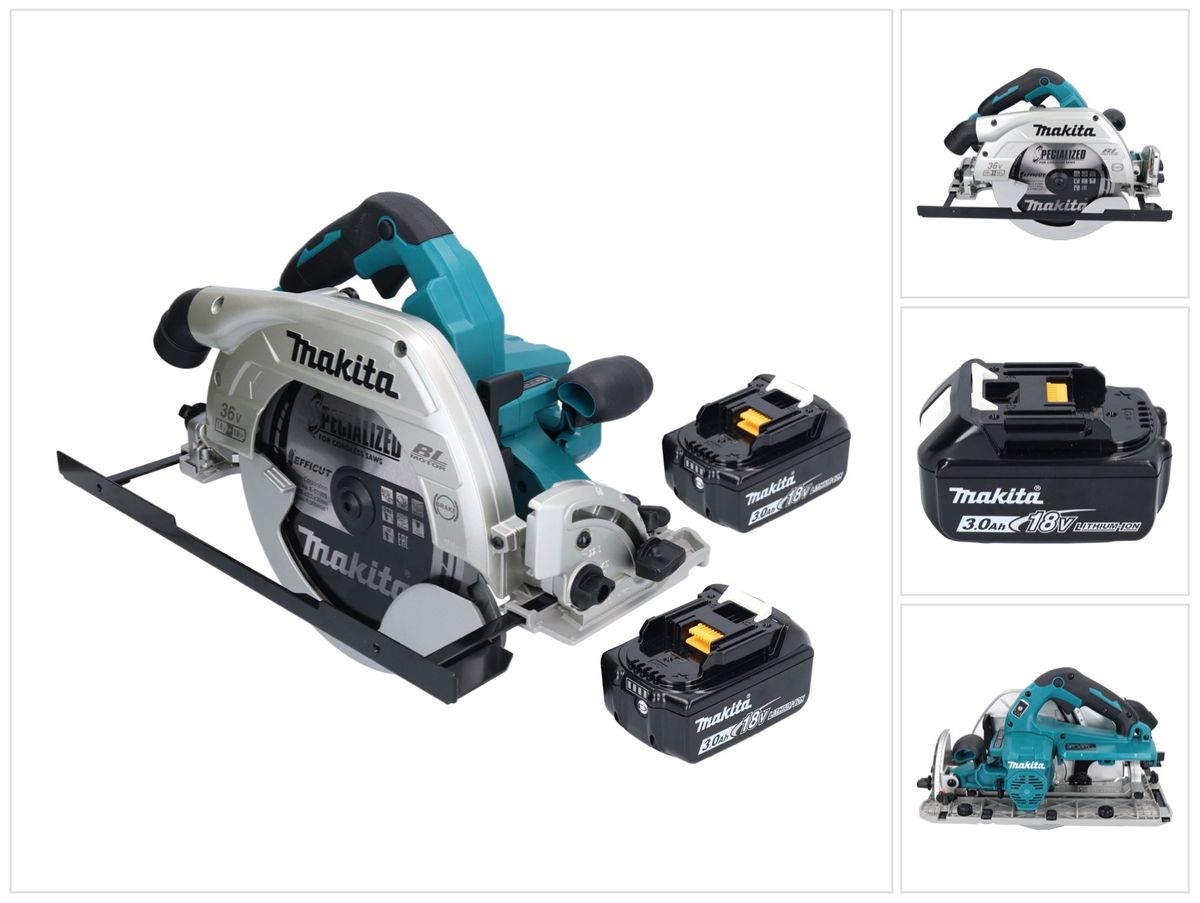 Sierra circular a batería Makita DHS 900 F2U 36 V (2x 18 V) 235 mm sin escobillas + 2x batería 3,0 Ah + adaptador Bluetooth - sin cargador