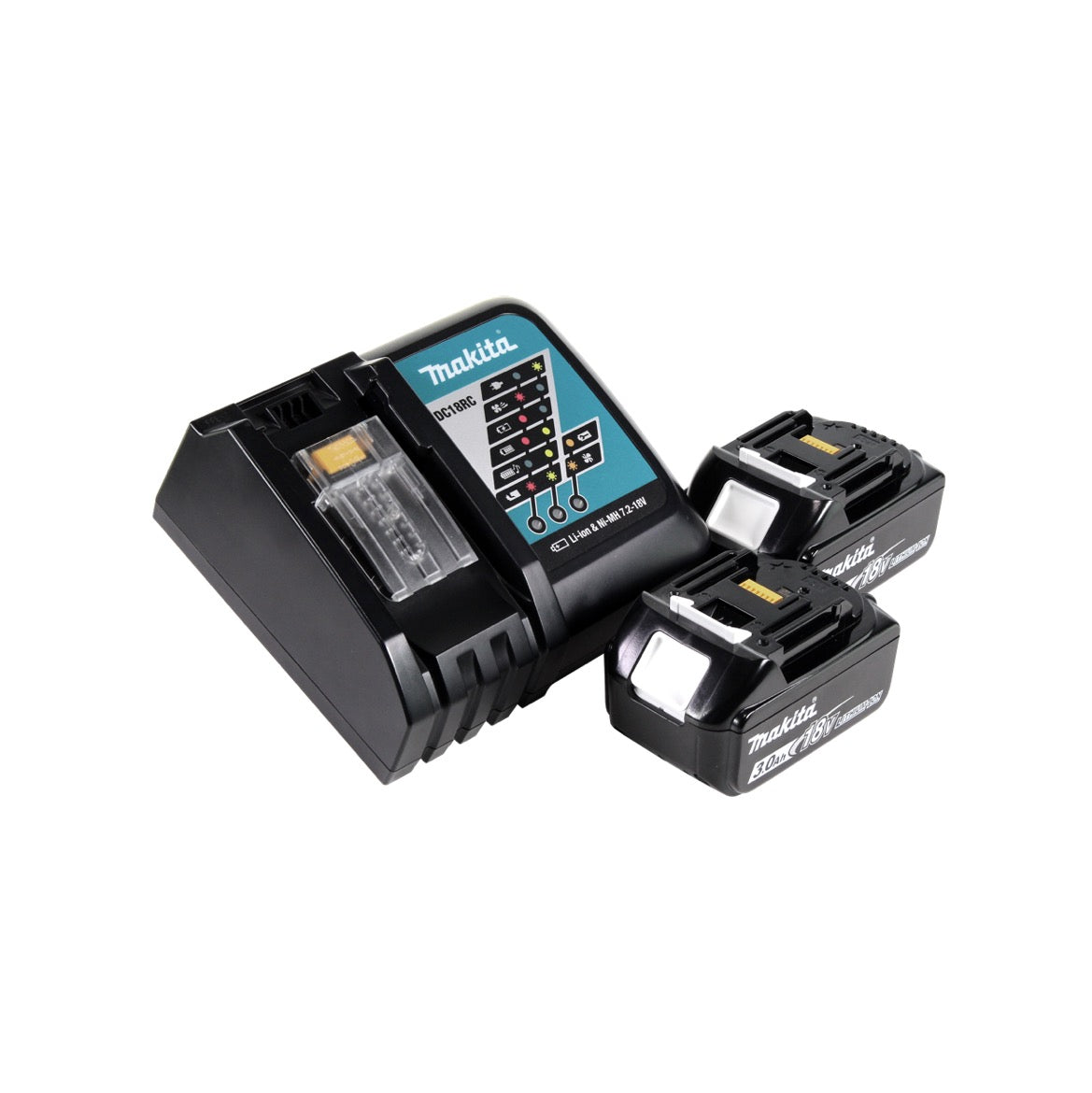 - 2 baterías BL 1830 B de 3,0 Ah - 18 V e indicador LED de nivel de carga